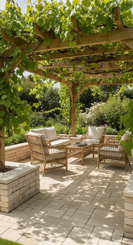 What really elevates the look is hardscape that doesn’t shout. Think simple stone paving, gravel, a pergola, gentle change in level. This is landscaping done intelligently.
