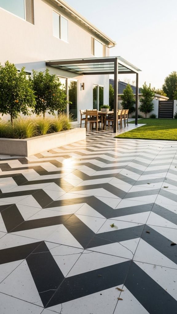 4. Patterned Concrete Tiles for Modern Flair