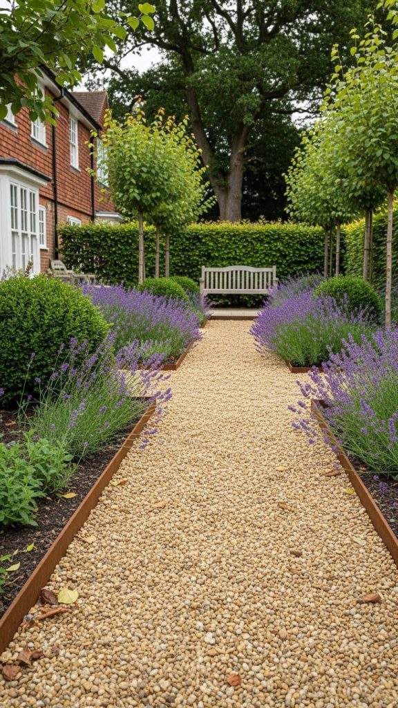 Gravel paths feel relaxed yet purposeful, providing a durable surface without rigid structure.