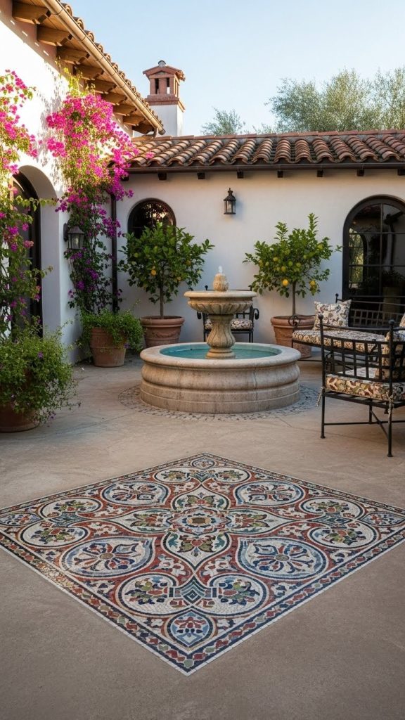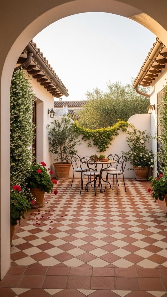 Patterned tiles make a small courtyard unforgettable, proving that size doesn’t limit design impact.