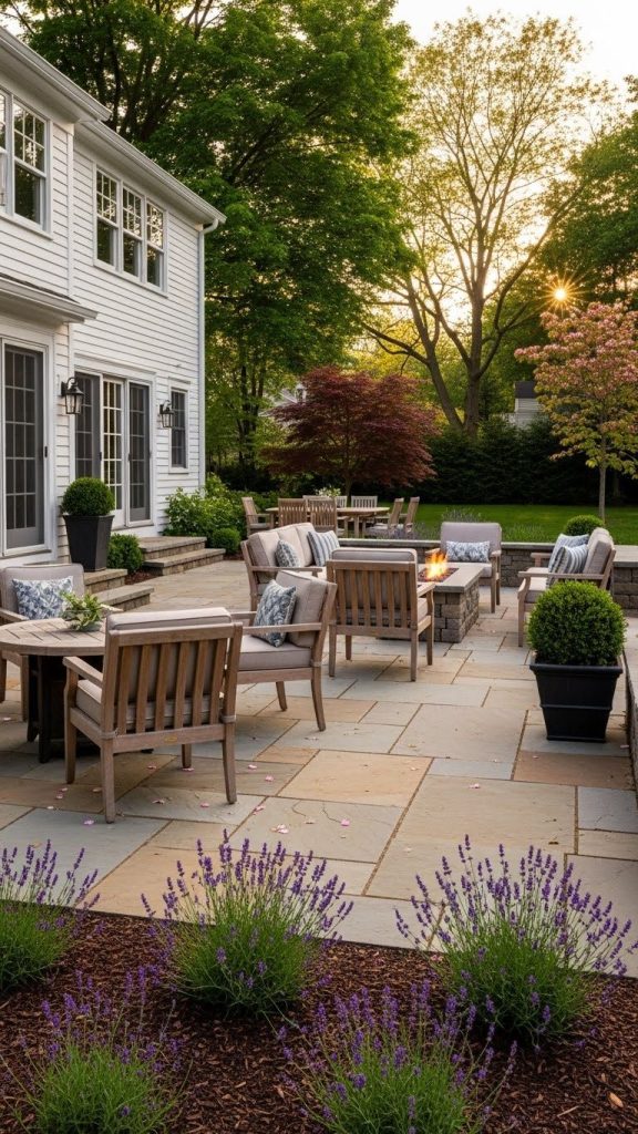 Paired with outdoor furniture, flagstone patios invite casual dining, reading, or socializing.