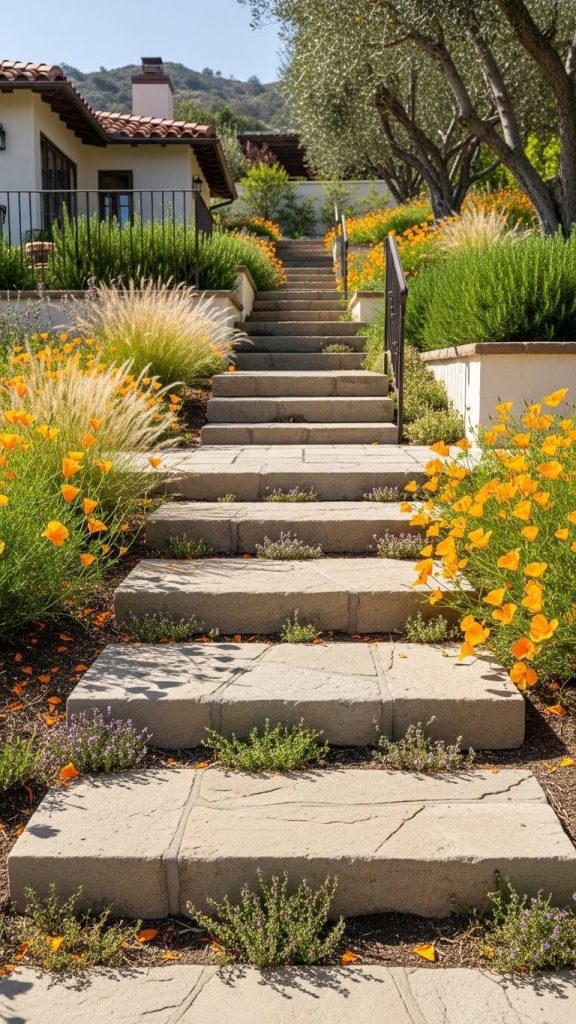 Steps are rarely just functional—they can be decorative. Integrating low plants between paved steps softens hard edges and enhances appeal.