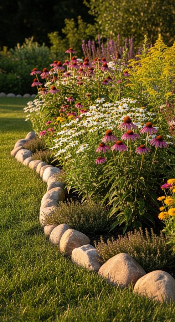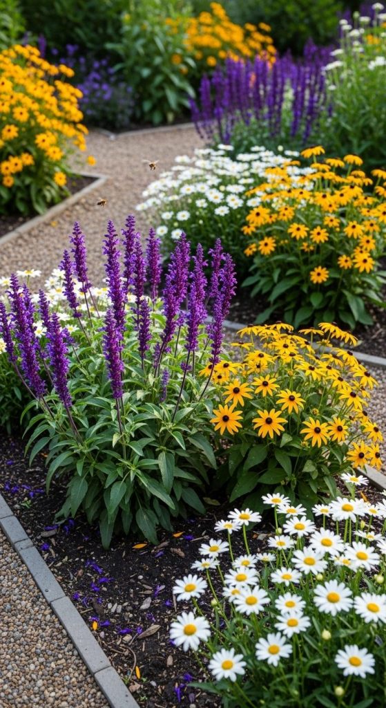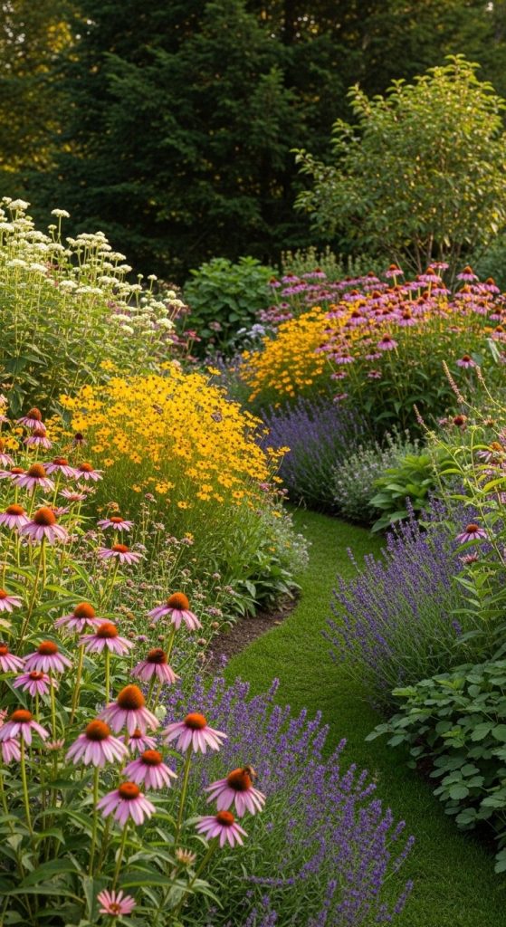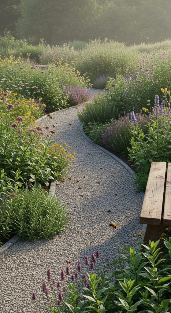 Takeaway: A curved, flower-rich border gives your layout structure and life—treat it like the edge of a stage where the pollinators perform.