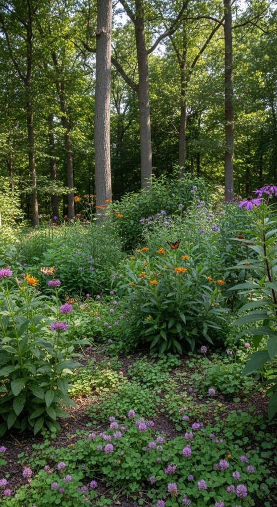 You might only think horizontal when you think garden layout. But for the best pollinator garden layout, you add vertical layers: groundcover, mid shrubs, tall native trees or woody plants. I discovered this when I added a small native shrub behind my perennials and suddenly more butterflies showed up.