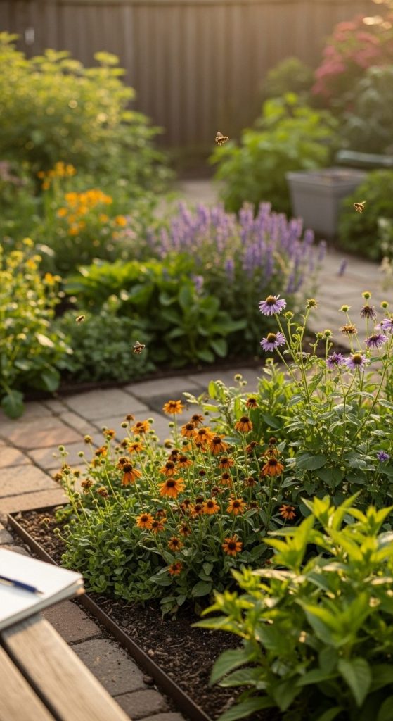 Here’s one many skip: watching what happens and updating. I walk my pollinator garden layout each month with a notebook. What’s blooming? What bugs are showing up? What looks tired? You’ll want your layout to evolve.
