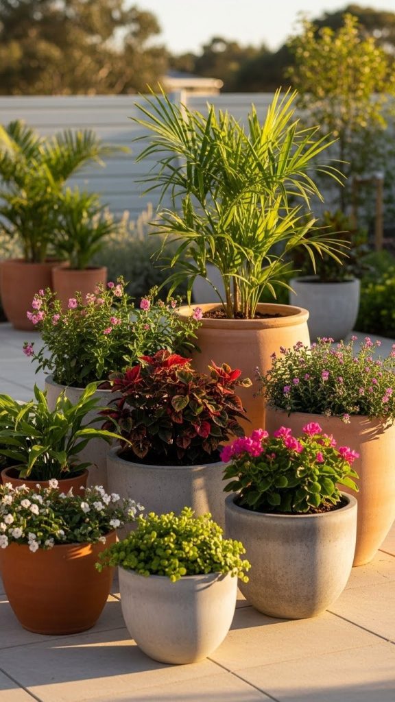 If you love plants but want flexibility, potted options are perfect. You can move them as the sun shifts, switch them seasonally, or cluster them for visual impact.