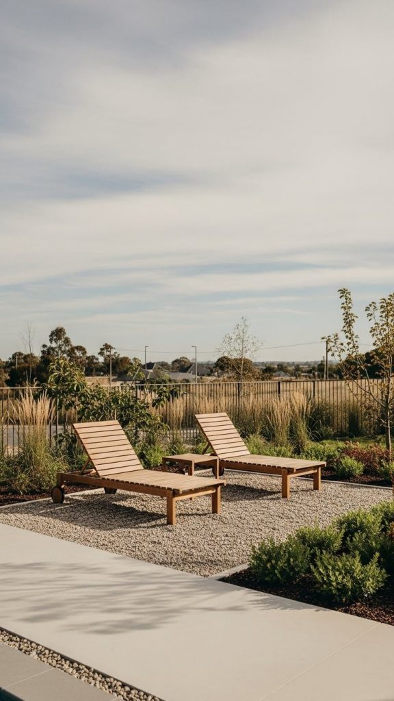 A gravel nook feels relaxed, minimalist, and refreshingly low-maintenance. It’s perfect for people who want a casual hangout spot without installing more concrete or paving.