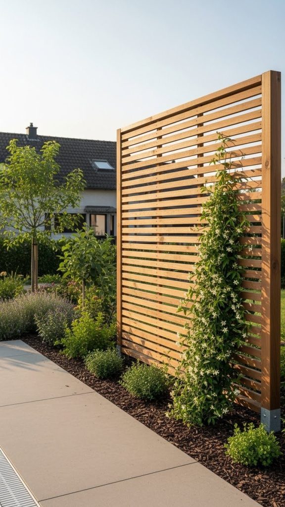 A privacy screen makes a huge difference if your pool feels too exposed. A simple wooden lattice or slatted wall brings structure without blocking airflow.