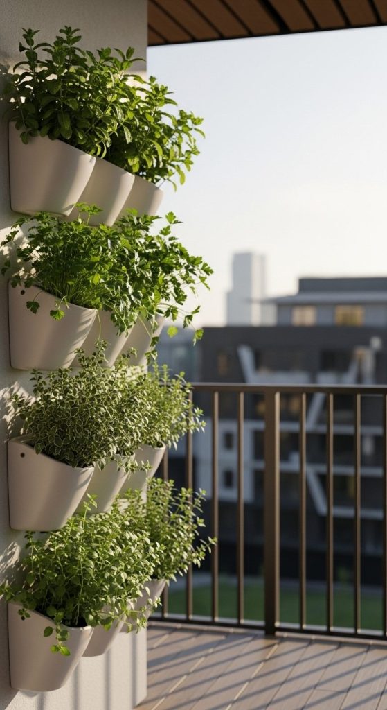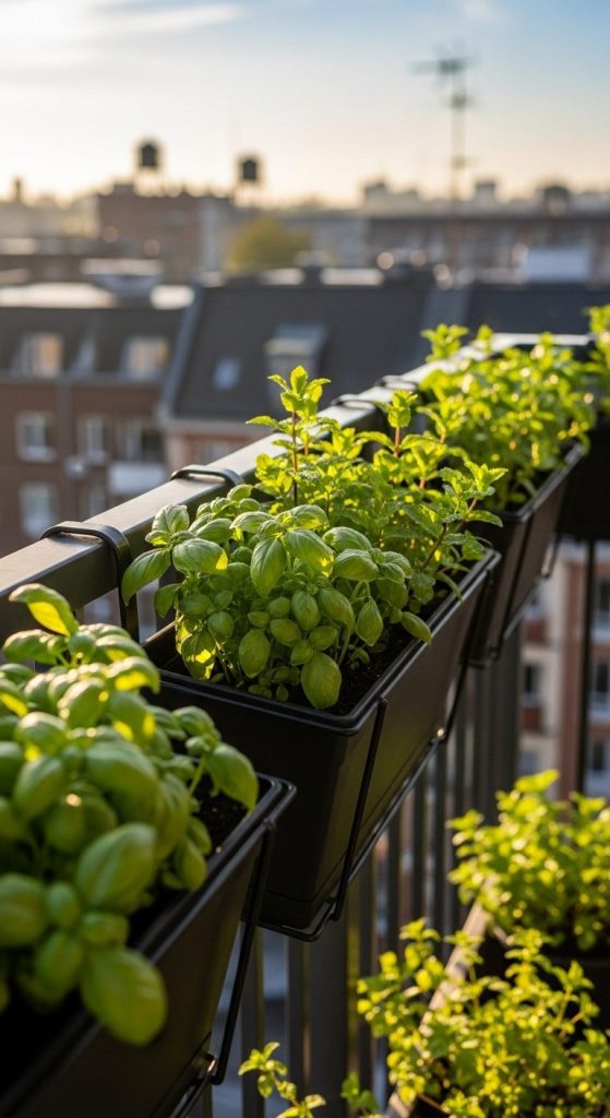 Perfect for apartment dwellers, railing planters keep herbs close without taking up valuable floor space.