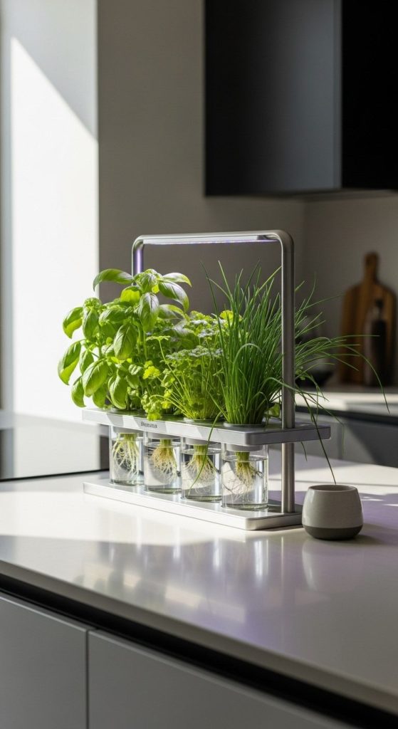 Tech meets nature. Hydroponic systems let herbs grow in water instead of soil — no mess, just fresh herbs.