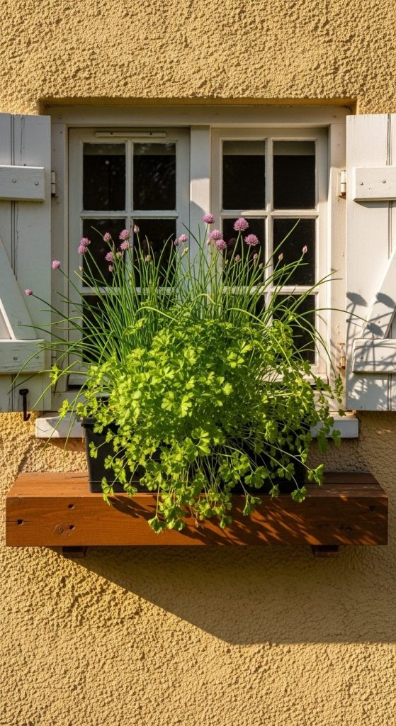 A window box packed with herbs is both practical and picturesque — especially for cooks who love reaching out for fresh greens mid-recipe.