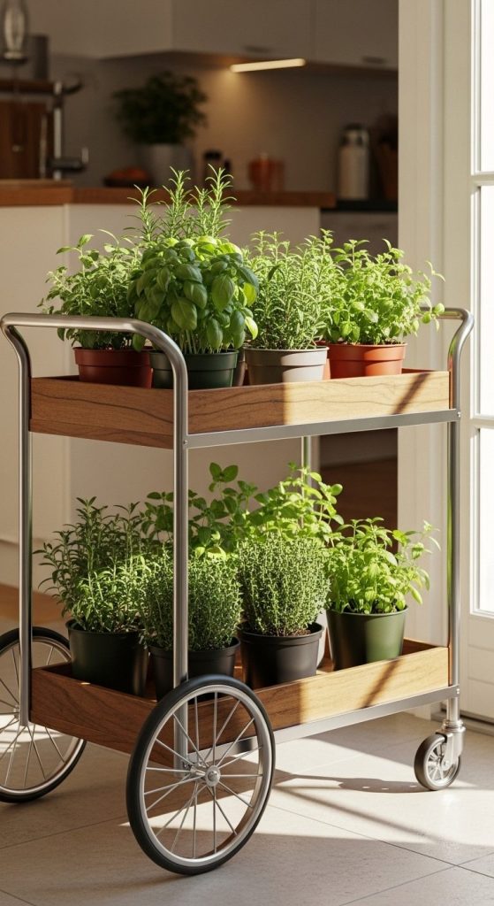 Need flexibility? A rolling cart lets you move your herbs wherever the sunlight goes.