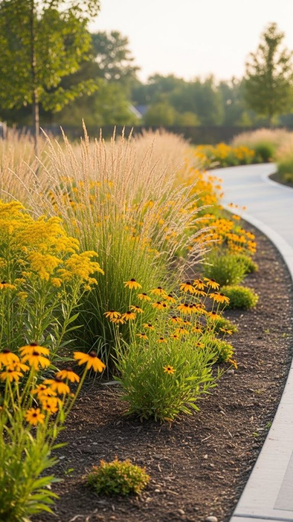 Creating meadow strips along walkways or fences adds airy movement and seasonal character.