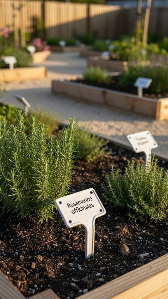 Avoiding harsh metal signs and choosing simple wooden or ceramic markers keeps things warm and approachable.