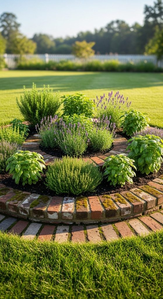 If you’re short on space, go vertical with stacked brick circles — like tiered layers of herb heaven.