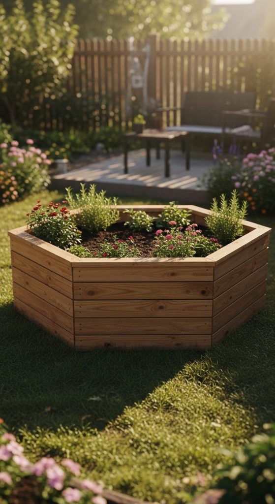 Why it works: The shape adds visual rhythm to your garden and allows multi-directional access for planting and harvesting.