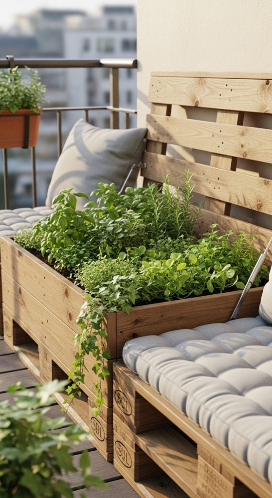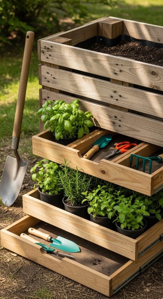Modify your pallet bed to include pull-out planter boxes underneath — ideal for storing tools or growing hidden herbs.