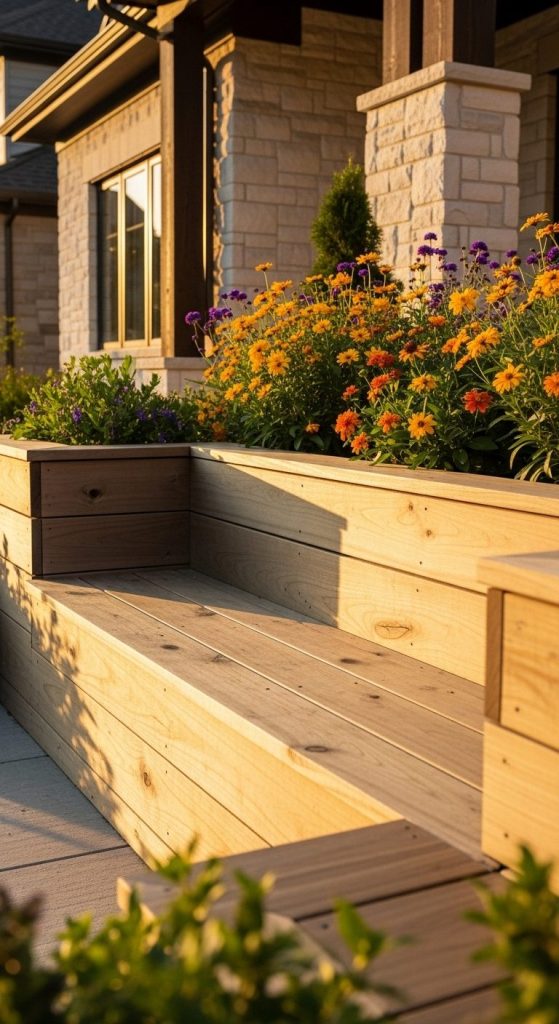 Mixing stone sides with wooden trims adds both warmth and structure — a perfect balance between rustic and refined.