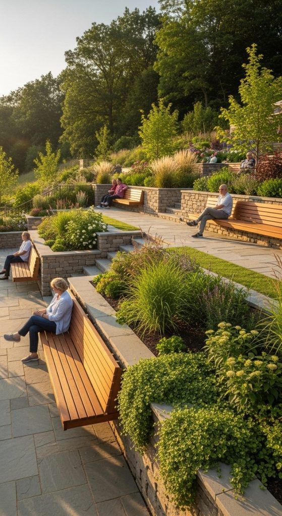 Why not make your slope garden double as a relaxation spot? Build a retaining wall with integrated benches or seating areas.