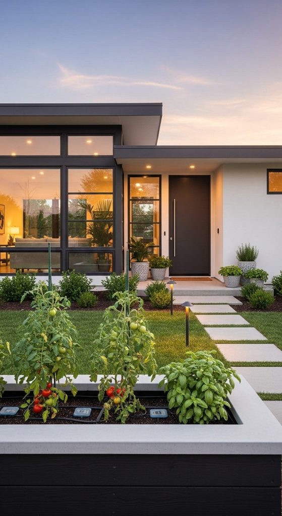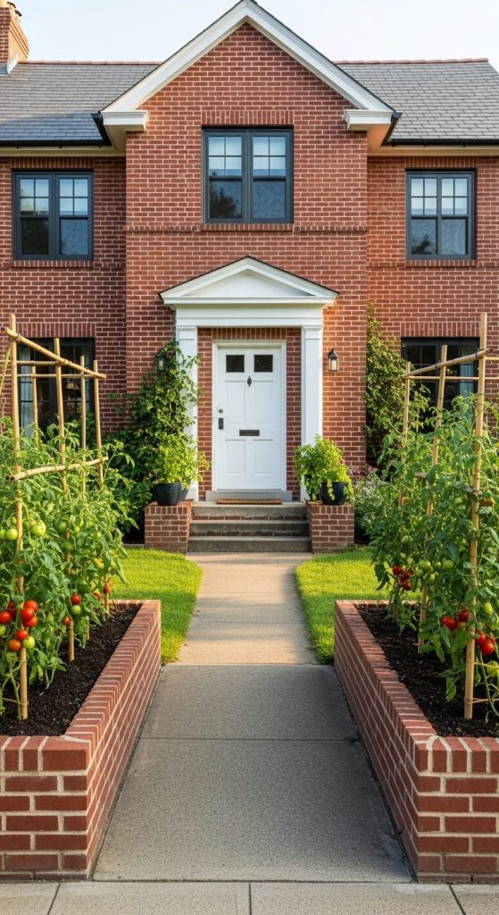 Architecturally, brick-raised beds create symmetry and a timeless touch. Tomatoes love the warmth bricks store during the day.