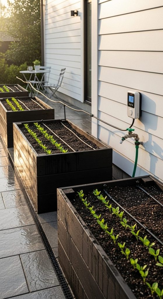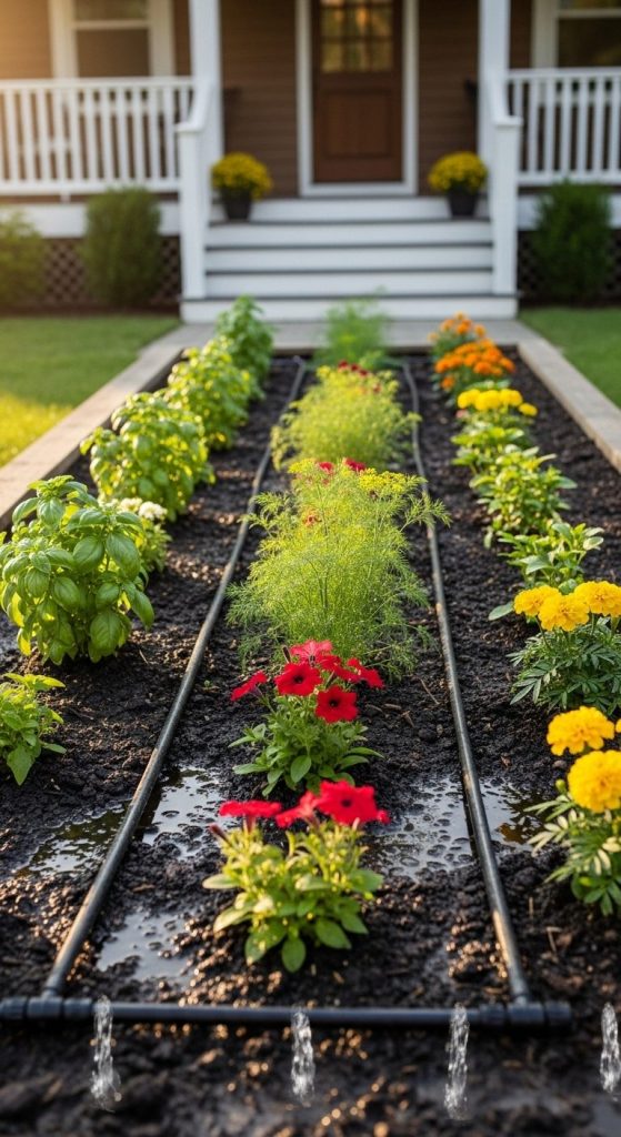 For a sleek, invisible option, bury perforated tubes under the soil surface. The system hydrates from below, keeping moisture consistent.