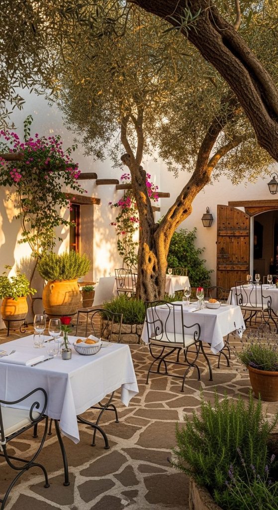 A Mediterranean-style courtyard turns your restaurant into a mini vacation — rustic charm meets upscale comfort, no passport required.
