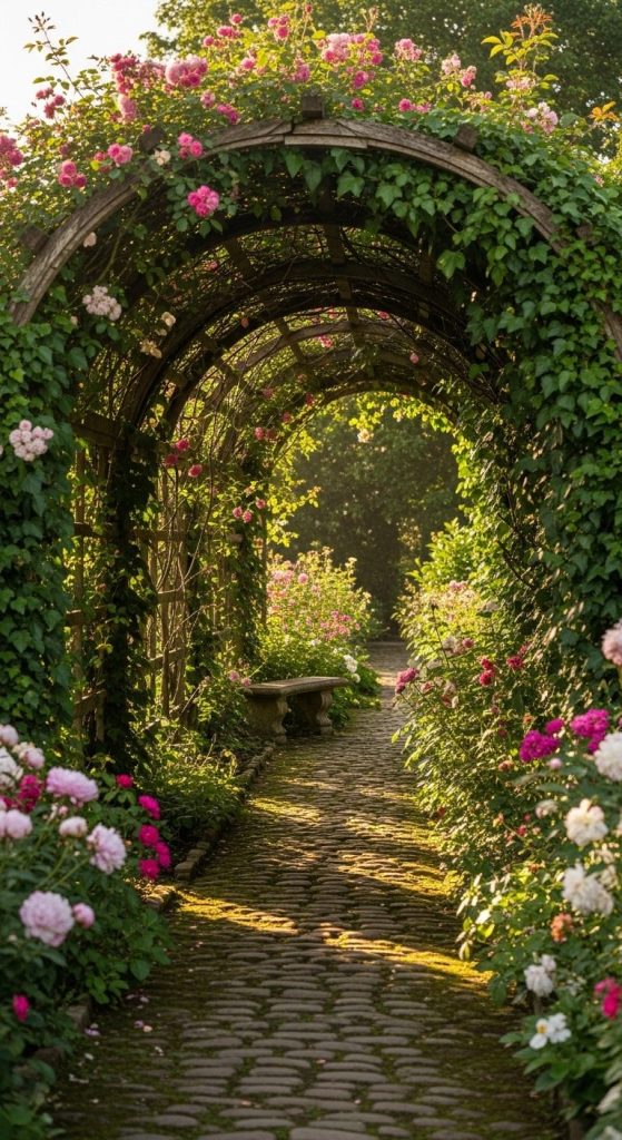 Worn wooden arches covered in roses or ivy? Pure poetry.