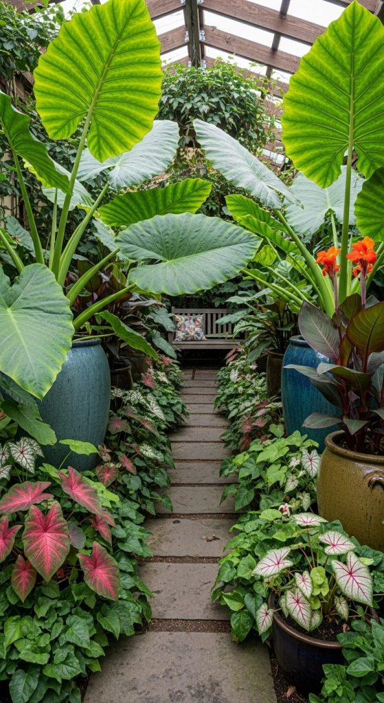 When I planted elephant ears under my maple tree, it suddenly looked like a jungle retreat. Pro tip: use oversized pots for an instant tropical vibe even in smaller spaces.