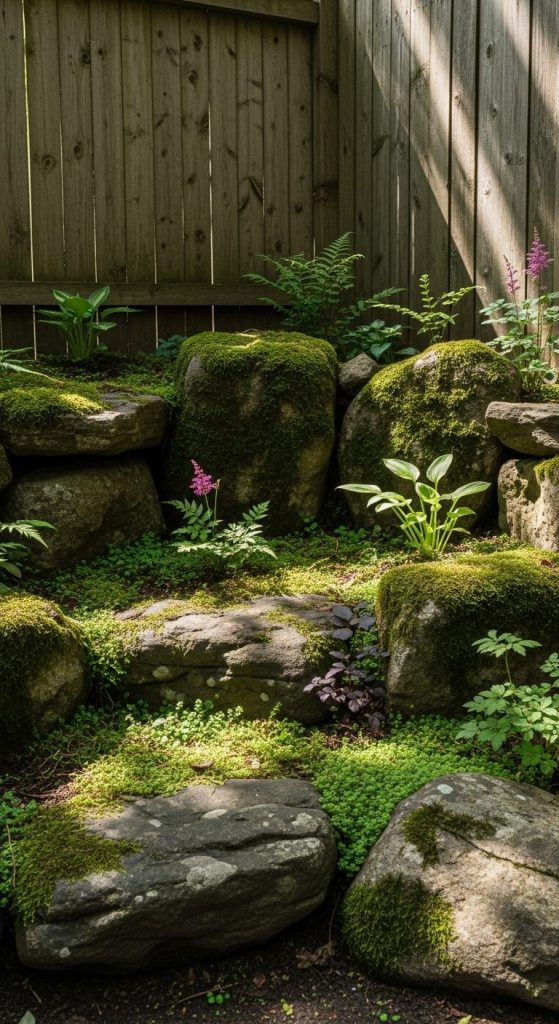 Yes, rock gardens aren’t just for sunny slopes. Use mossy rocks, ferns, and shade perennials to create a calm, earthy vibe.