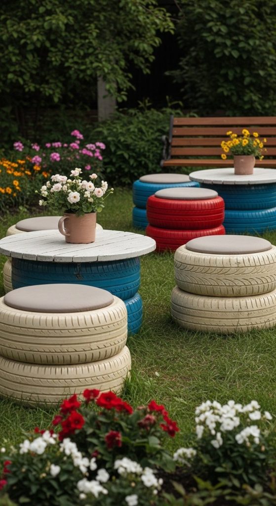 Tire furniture gives your garden both seating and sustainability — a creative two-for-one.