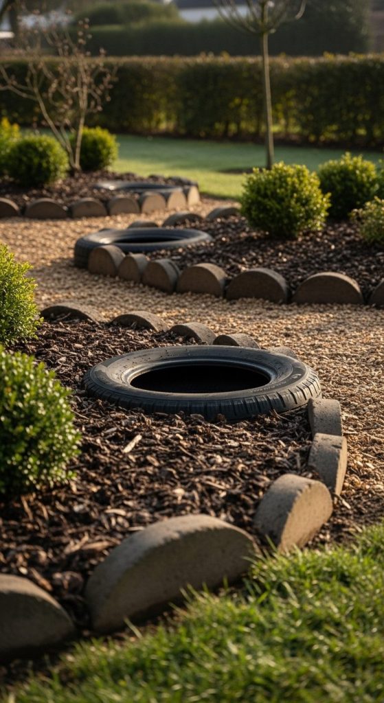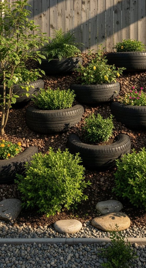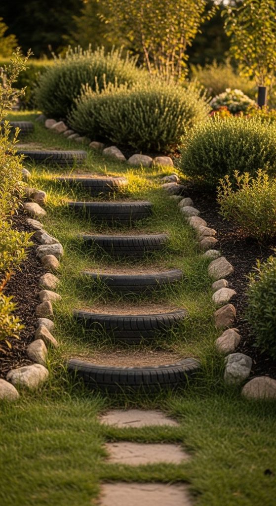 Got a sloped yard? Use half-buried tires as steps. They’re surprisingly durable and add a rustic touch to your landscape.
