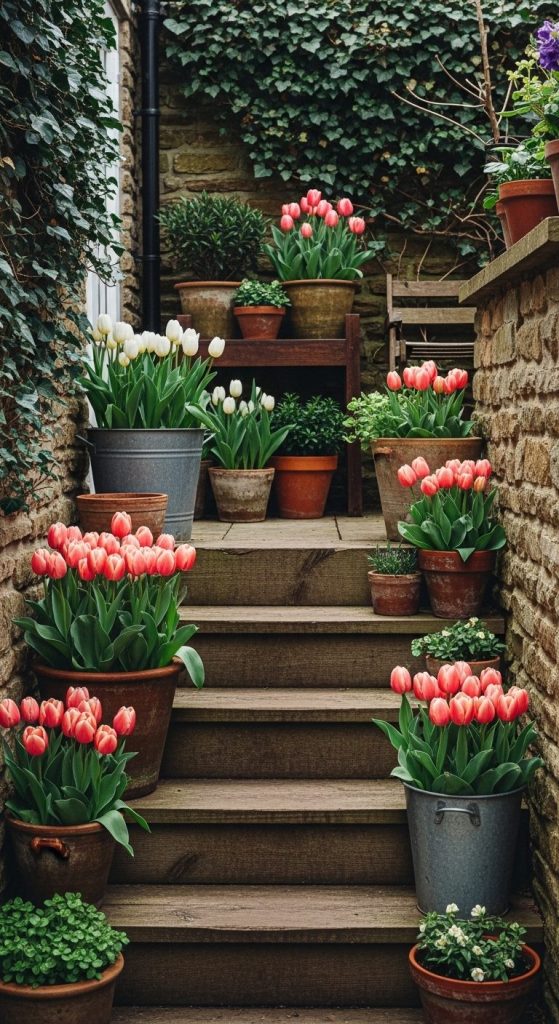 Containers are a perfect way to enjoy tulips anywhere — from doorsteps to balconies — giving you full spring joy in small doses.