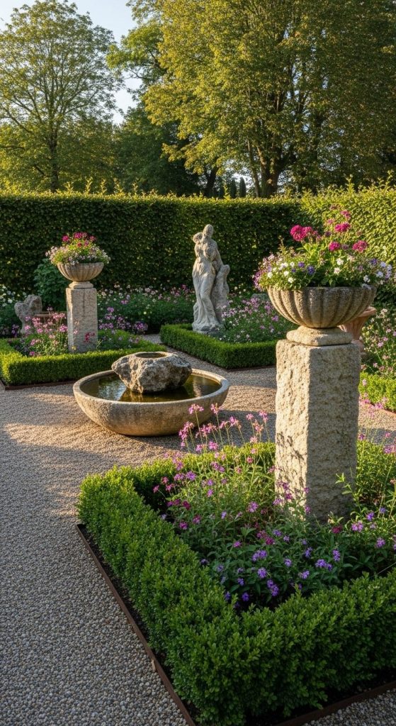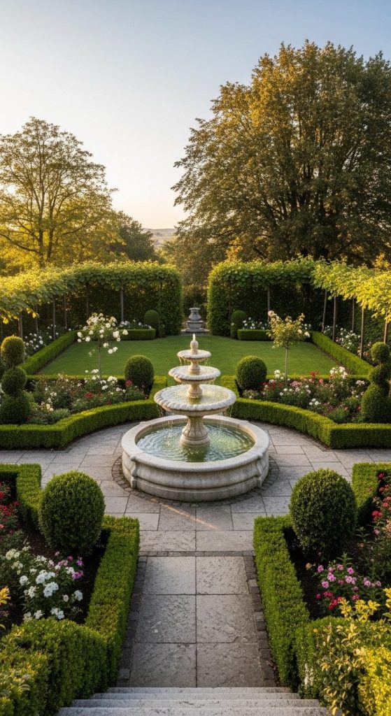 Takeaway: A fountain instantly signals luxury and serenity, becoming the heart of your garden.