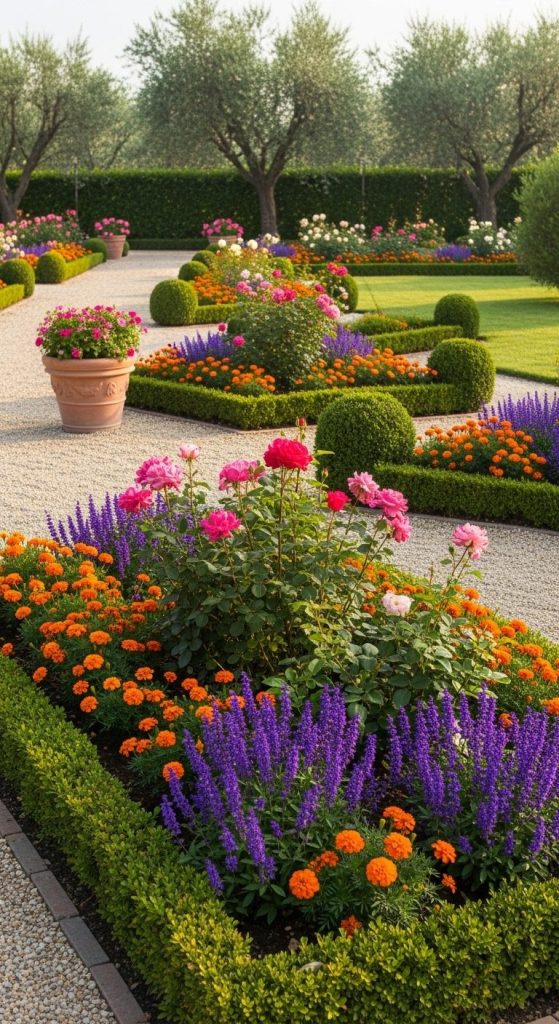 Planting a mix of perennials and seasonal flowers along edges adds color throughout the year. I’ve tried alternating roses, marigolds, and salvias for continuous blooms.
