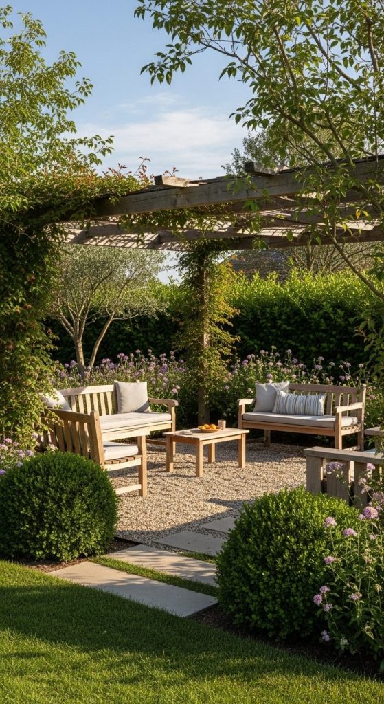 Creating shaded nooks with pergolas, benches, or large trees transforms the villa garden into a comfortable retreat. Perfect for summer afternoons.