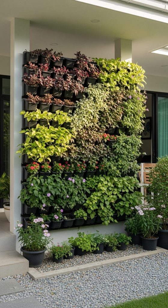 Takeaway: Vertical gardens combine beauty with practical space-saving benefits.