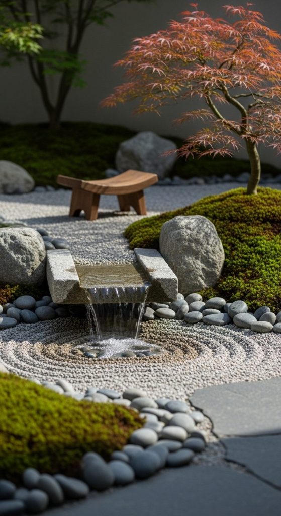 Zen-inspired waterfalls focus on simplicity and intention. Soft-water trickles, smooth stones, and minimal planting — the whole space feels meditative.