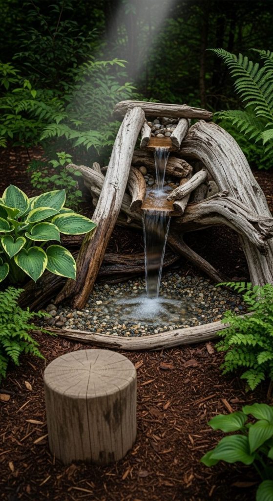 8. Rustic Log or Driftwood Waterfall