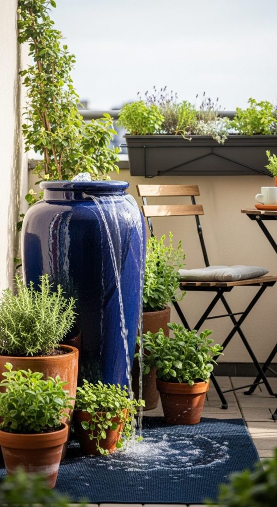 No yard? No problem. Container waterfalls use pots, urns, or tall planters to create a vertical water feature that fits balconies and tiny patios.