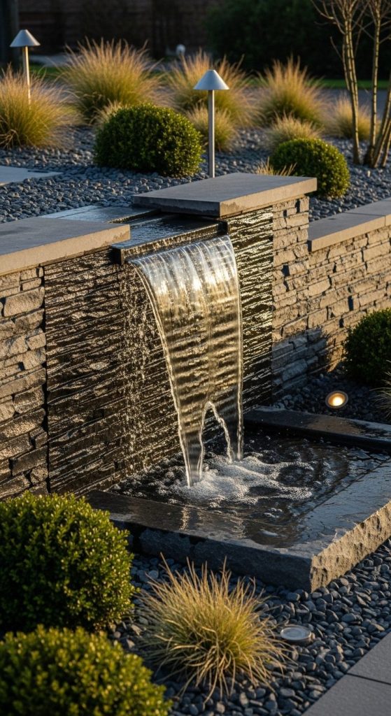 Tiered waterfalls let water move across multiple “steps,” creating different sounds and visual interest at every level. They’re fun, dynamic, and almost sculptural.