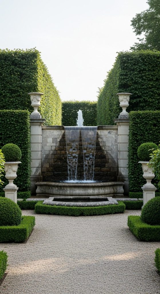 Think symmetry, stone walls, and classic shapes. A formal waterfall suits elegant gardens with a touch of luxury and traditional charm.
