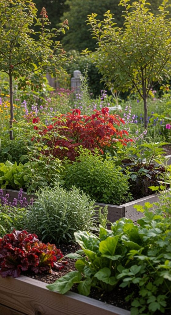 Combine wild aesthetics with edible perks: herbs, berries, or wild greens thrive with minimal care and look natural.