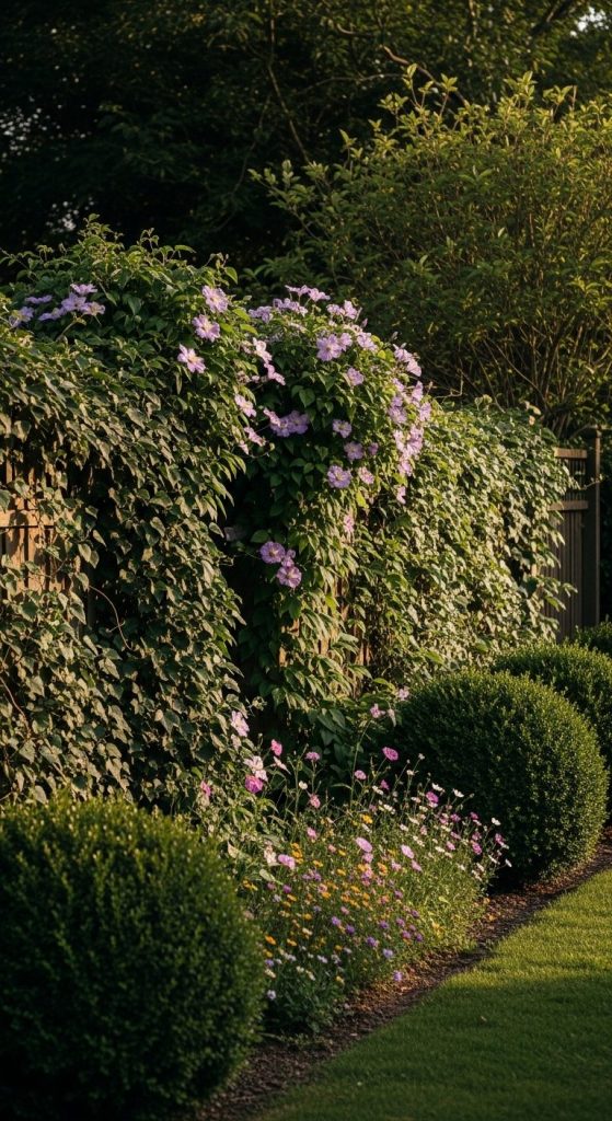 Transform fences from boundaries into living walls with ivy, clematis, or morning glories. It’s a simple trick with dramatic effect.