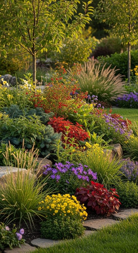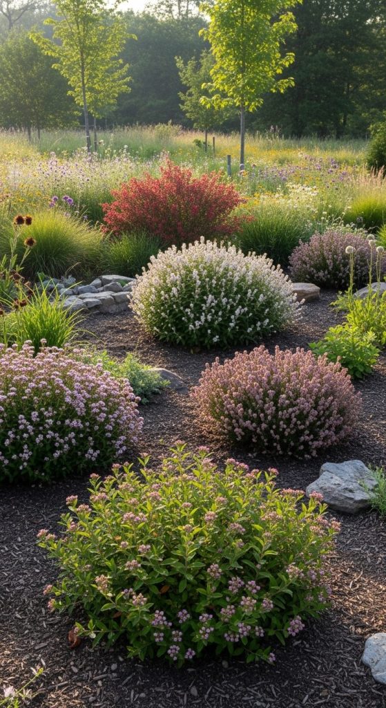 Planting shrubs that naturally grow in your region creates structure, food sources for birds, and seasonal interest.