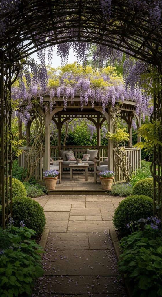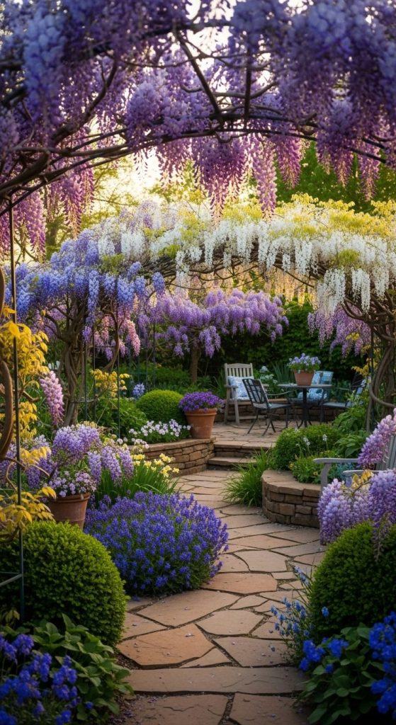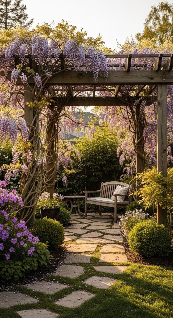Takeaway: A wisteria-covered pergola is timeless — patience pays off with jaw-dropping beauty.