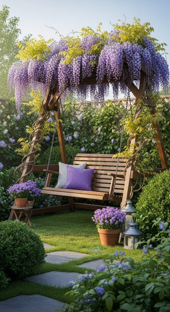 3. Wisteria-Topped Garden Swing