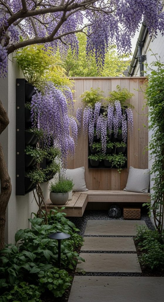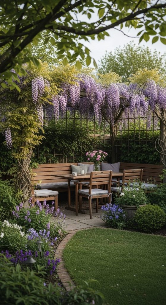 Takeaway: A wisteria-clad wall turns any garden into a romantic retreat effortlessly.