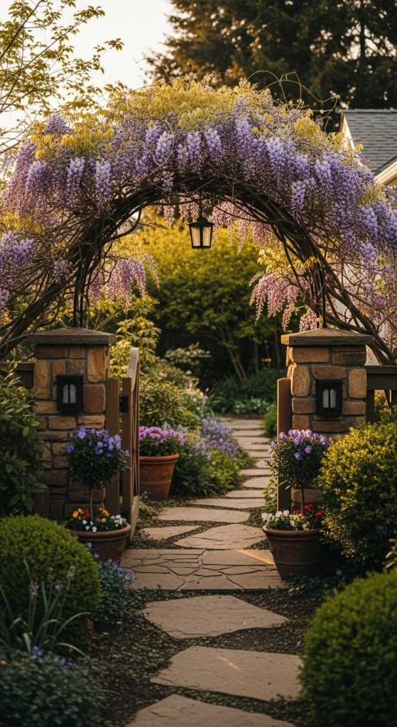 Takeaway: Framing entrances with wisteria makes your garden feel inviting and epic.