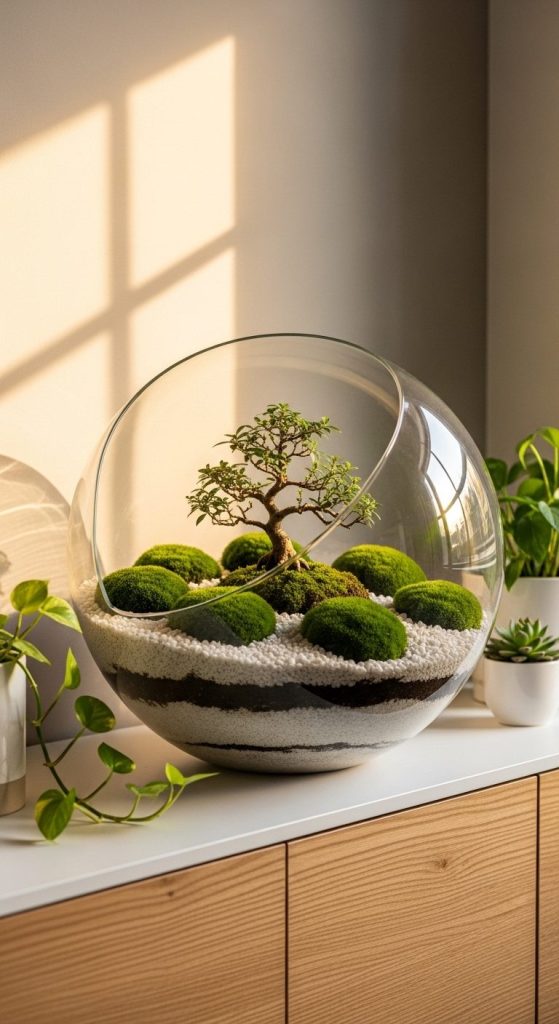Ever noticed how layering textures like moss and stone creates instant calm? That’s the magic of this idea — a small world of serenity inside a glass bubble.